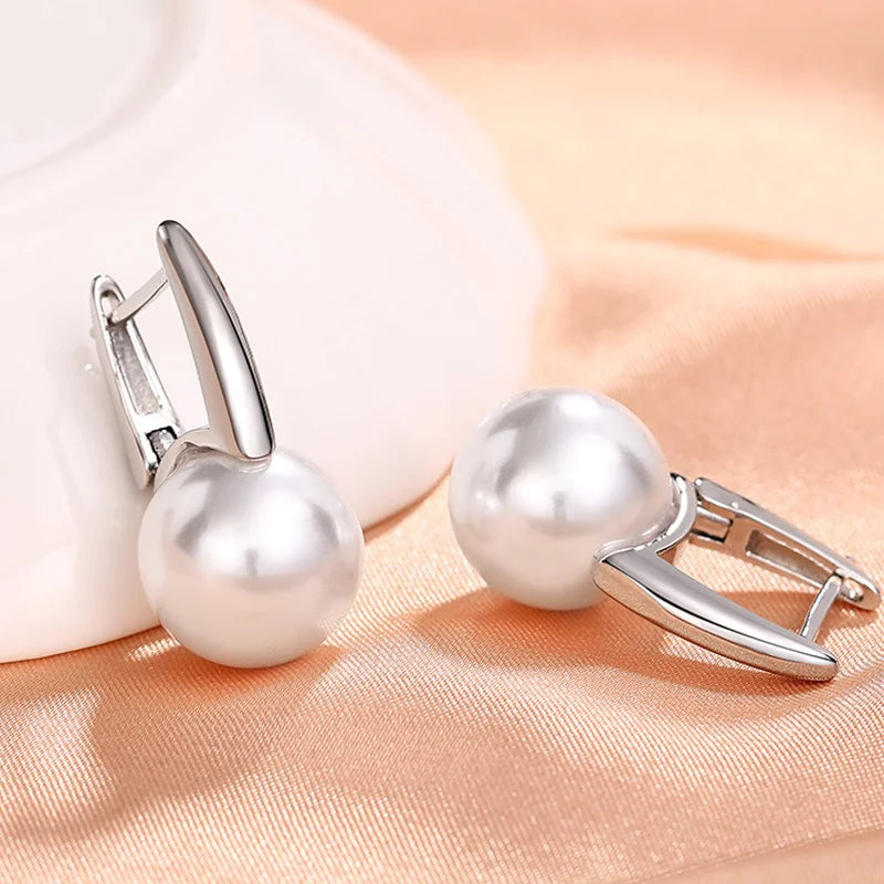 Huitan Simple Elegant Imitation Pearl Earrings for Women Metal Silver Color Fashion Versatile Lady's Ear Accessories New Jewelry